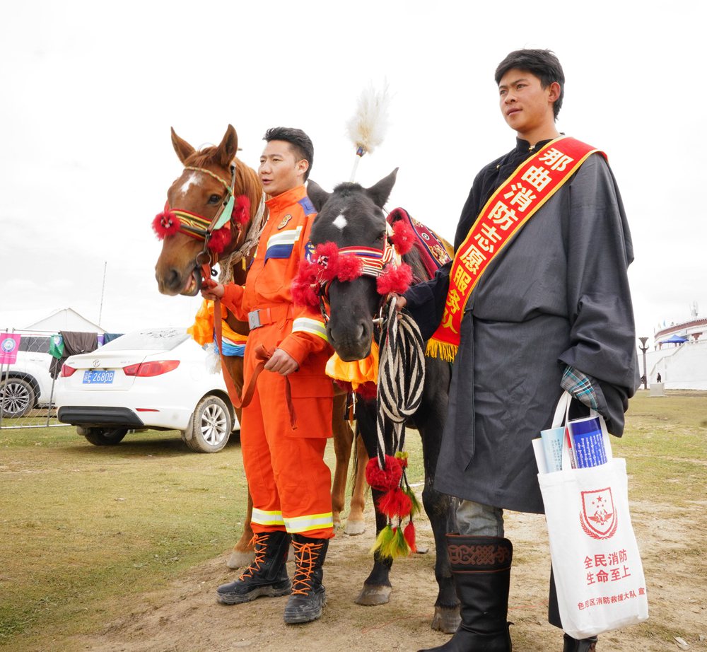 在西藏自治区那曲市广阔的赛马场上,一支特殊的“马背上的消防宣传”服务队近日成为亮丽风景。为保障赛马节期间消防安全,那曲市消防救援支队创新工作方法,联合马术协会工作人员与消防志愿者,骑马深入牧民帐篷营地及赛事区域,将消防安全知识送至每一位群众身边。