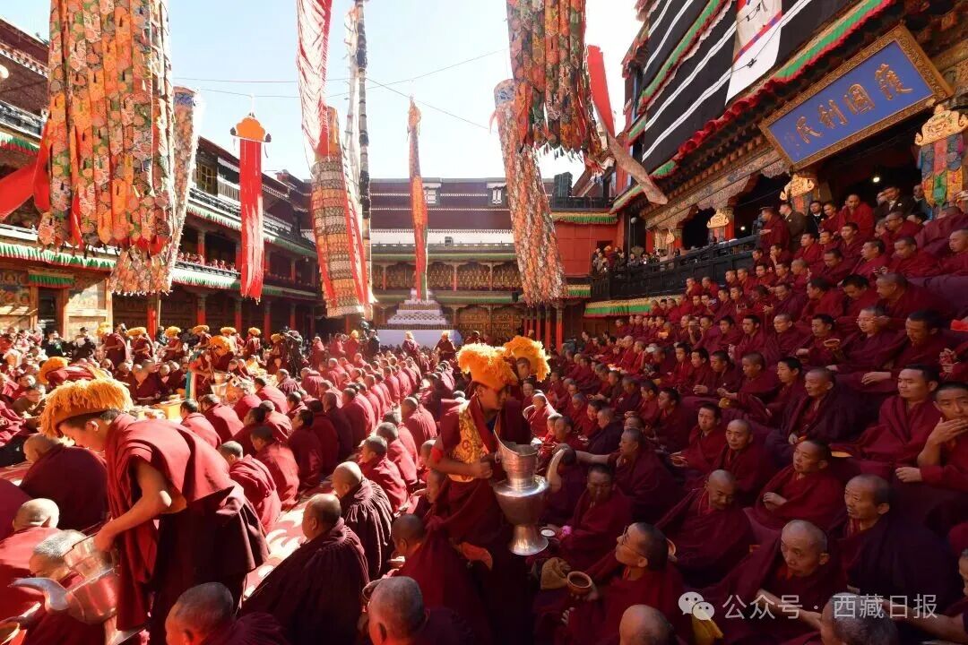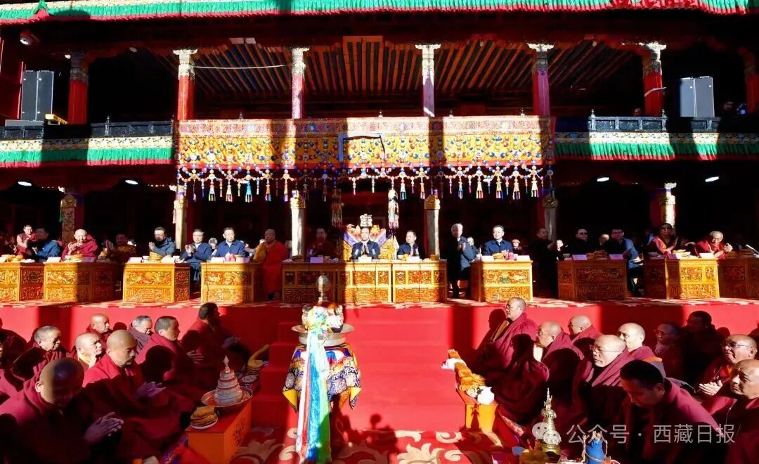 12月9日,是一个因缘殊胜、法喜圆满的日子。扎什伦布寺多加大院金幢高悬、法号声隆——班禅额尔德尼·确吉杰布坐床30周年纪念大会在这里举行。