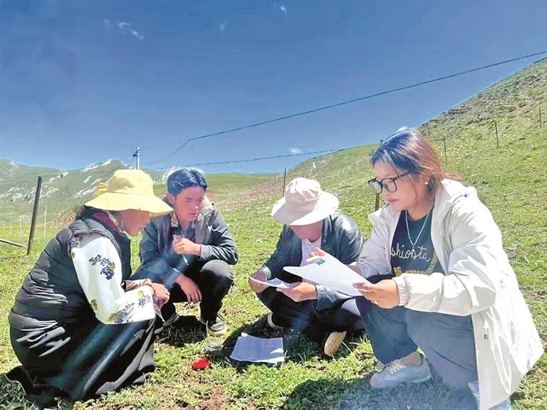 图为巴青县人民法院特邀调解员索朗旺旦(右二)深入乡镇牧场,零距离调解婚姻纠纷。 本报通讯员 尼玛嘎瓦 摄