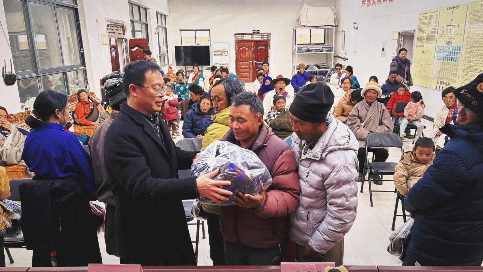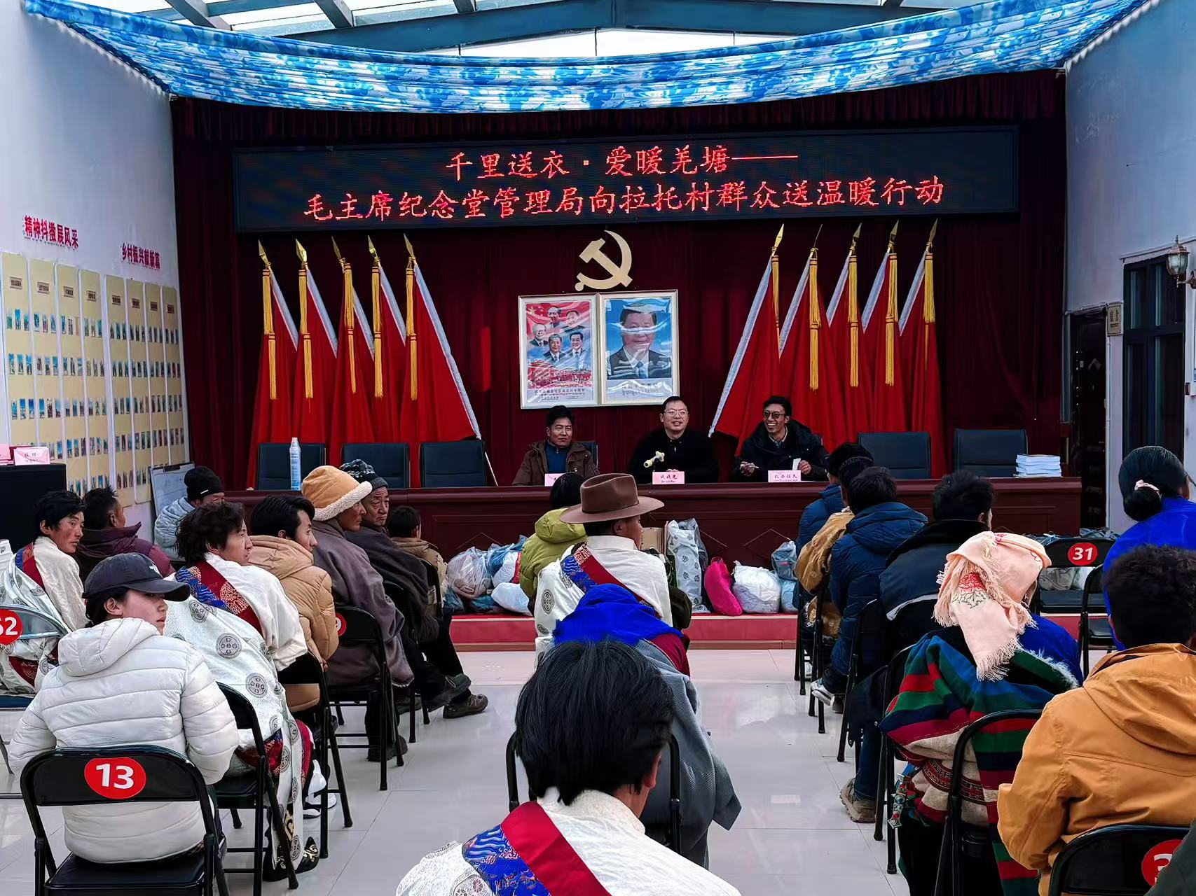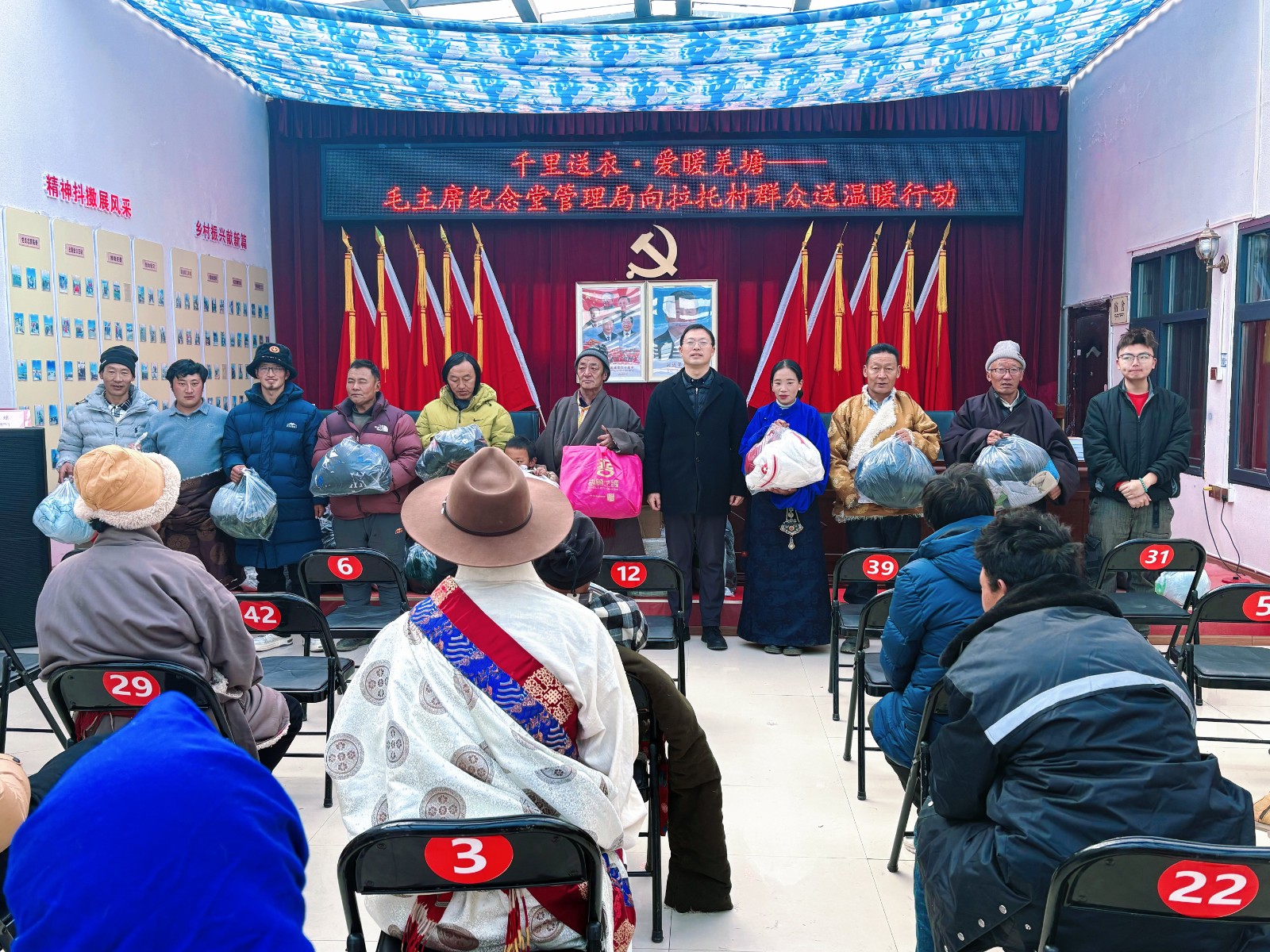 近日,经色尼区那曲镇拉托村驻村工作队牵头对接、精心筹备,“千里送衣·爱暖羌塘——毛主席纪念堂管理局向拉托村群众送温暖活动”在村内温情落地。
