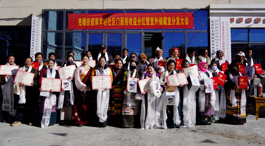 2月3日,羌塘街道南木切社区举办门面房收益分红暨室外储藏室分发大会,社区工作人员、驻村工作队与辖区居民、文艺爱好者齐聚现场,共庆民生福祉落地。