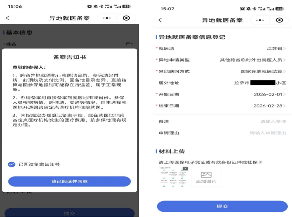 (二)阅读并同意“备案告知书”后,正确填写个人信息并按要求上传有效身份证件或社保卡图片,提交后即完成备案。