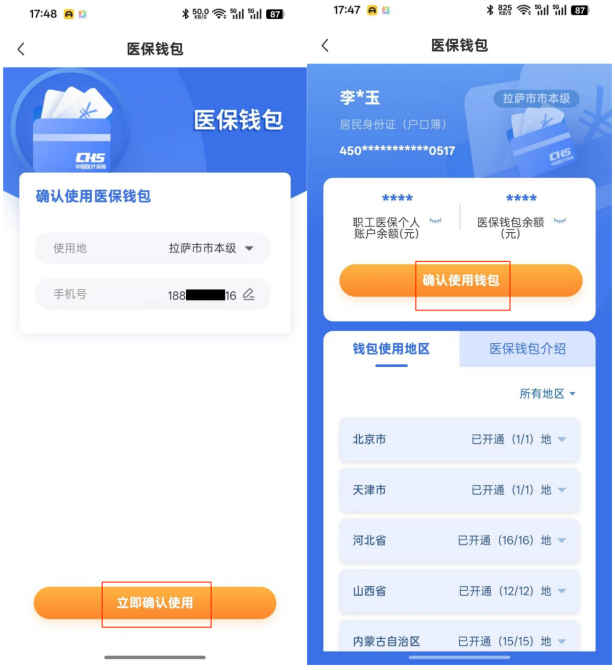 家人在开通“医保钱包”结算功能的定点医药机构,用“医保钱包”余额可以支付就医、购药时个人承担部分费用,也可根据当地医保政策购买城乡居民医保、商业保险等。