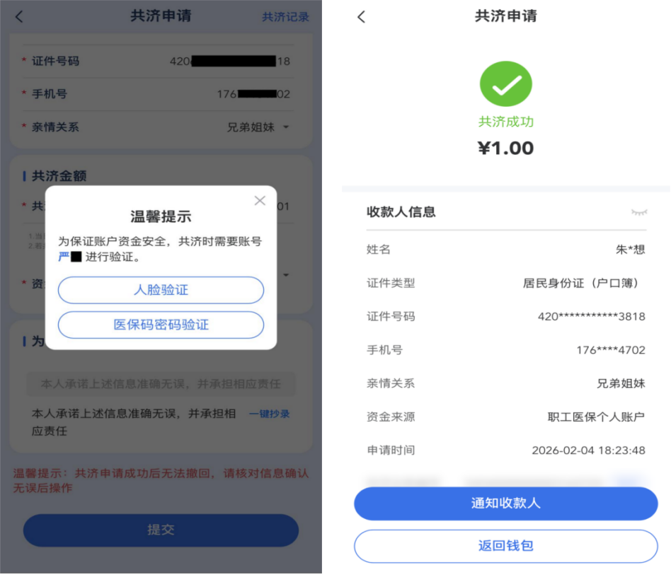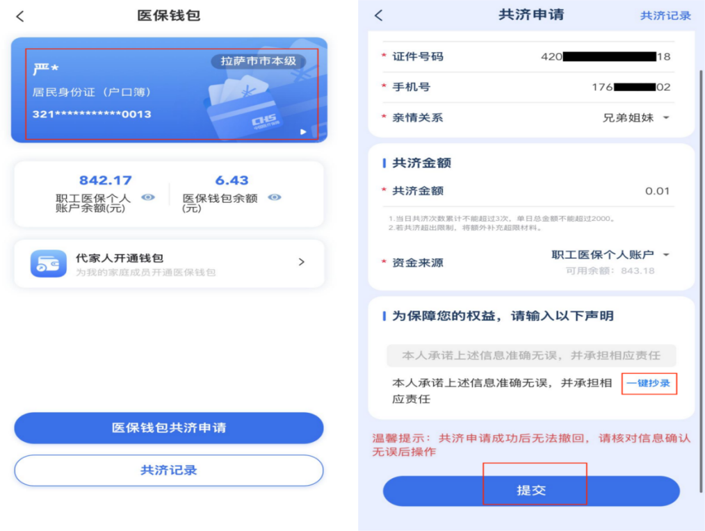 (三)点击“医保钱包共济申请”后,正确填写家人信息并提交。
