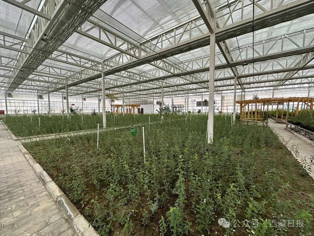 图为那曲市高寒植树试种二号基地,扦插育苗在温室大棚内茁壮成长。(2024年拍摄)