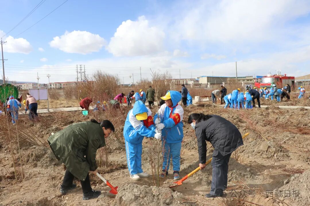 图为那曲市学生与干部共同履行植树义务。(2025年拍摄)