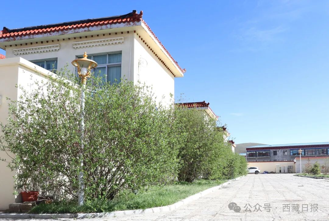 图为那曲市单位庭院植树试种成效。(2023年拍摄)