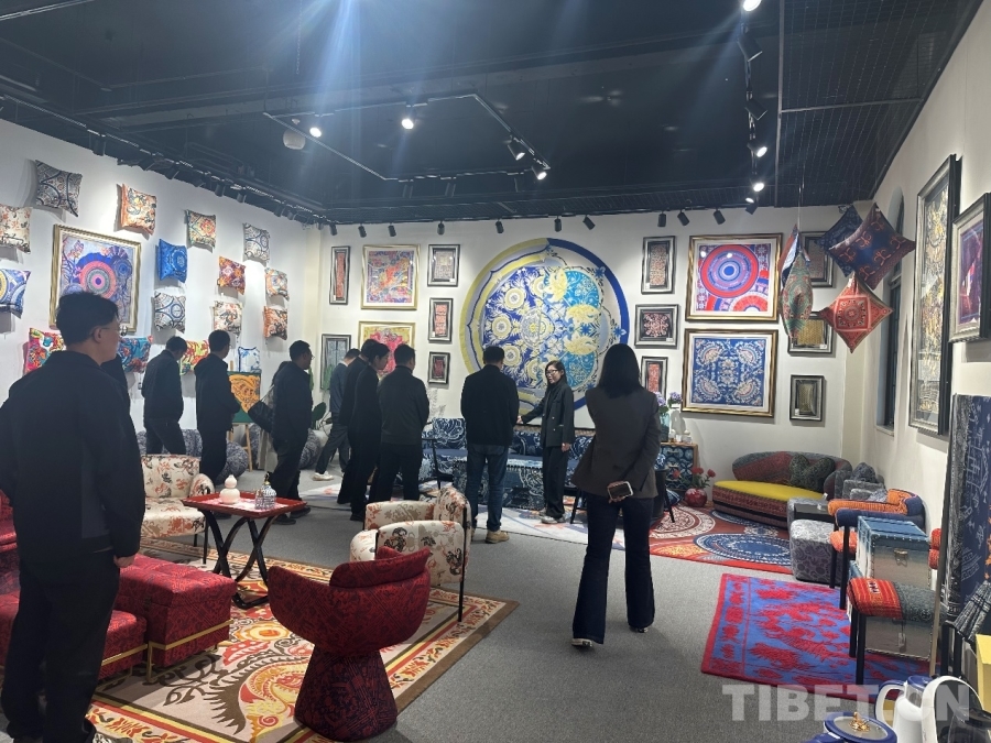 依文集团工作人员向色尼区考察团介绍旗下手工作品