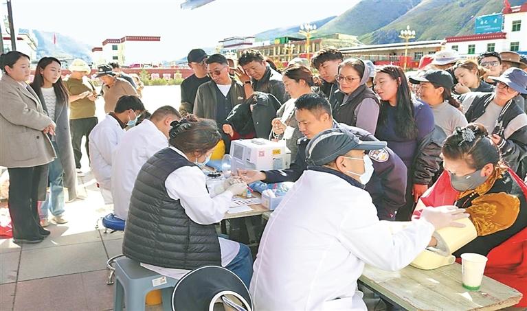 图为那曲市中心血站赴嘉黎县开展团体采血活动。本报记者 赵书彬 摄