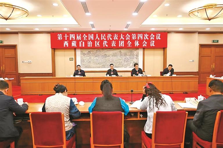 3月8日,西藏代表团举行全体会议,审议生态环境法典草案、民族团结进步促进法草案、国家发展规划法草案。