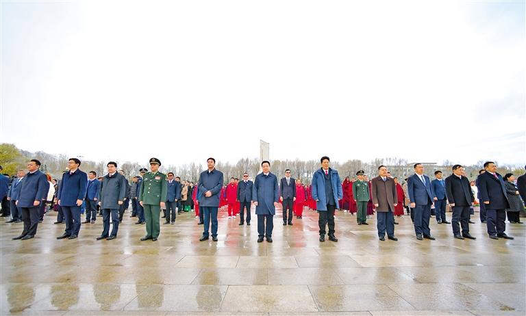 3月28日,自治区隆重举行纪念西藏百万农奴解放64周年系列活动。这是王君正等自治区领导在布达拉宫广场