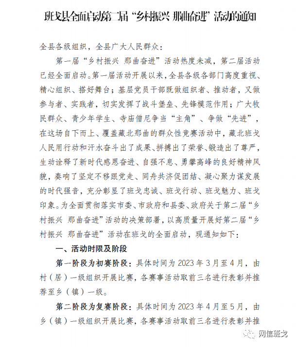 班戈县全面启动第二届“乡村振兴 那曲奋进”活动的通知